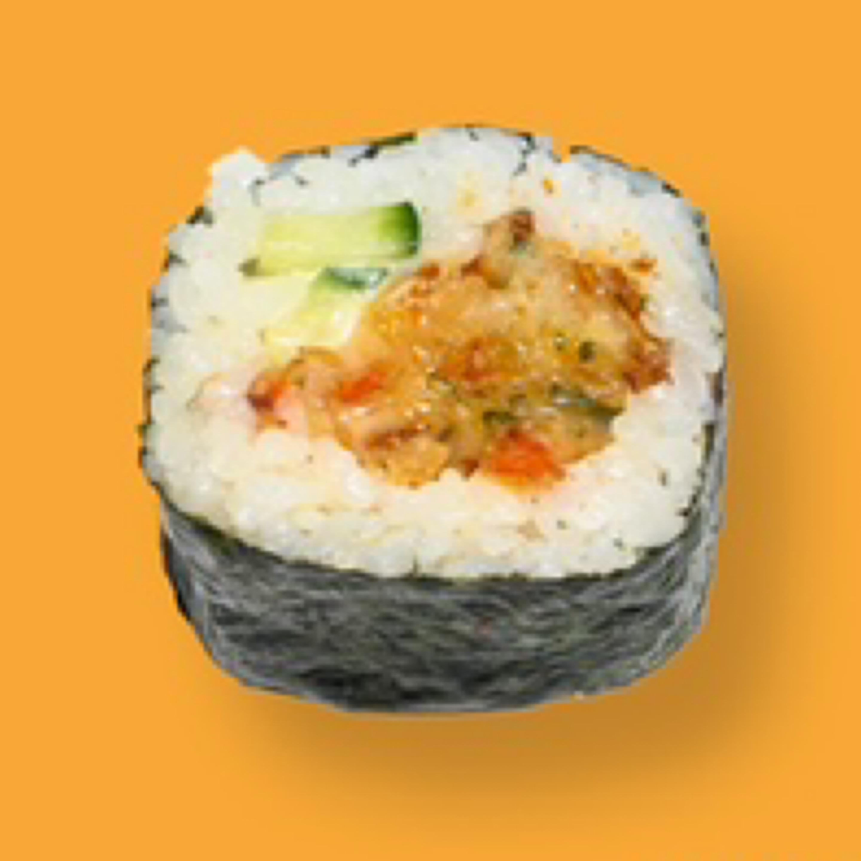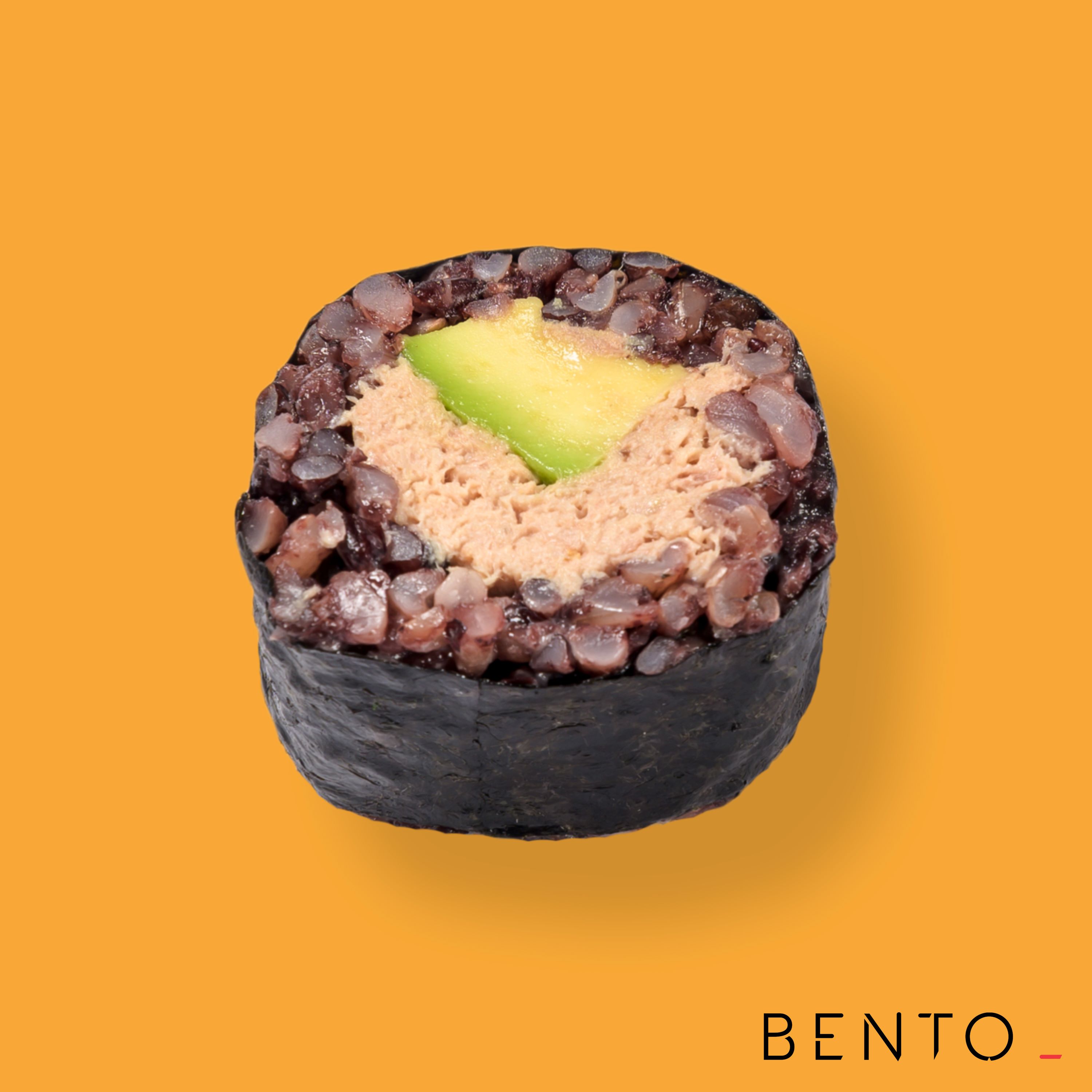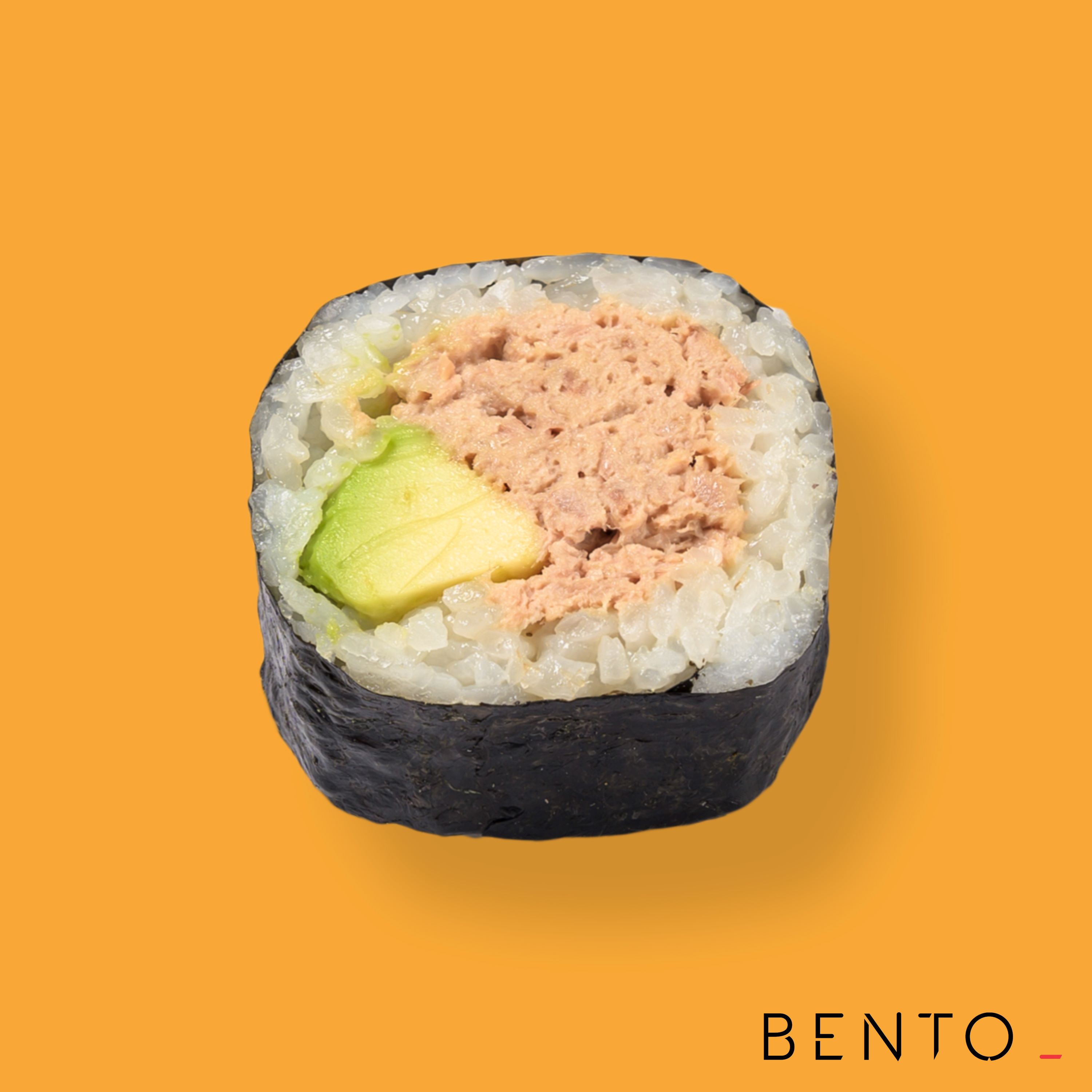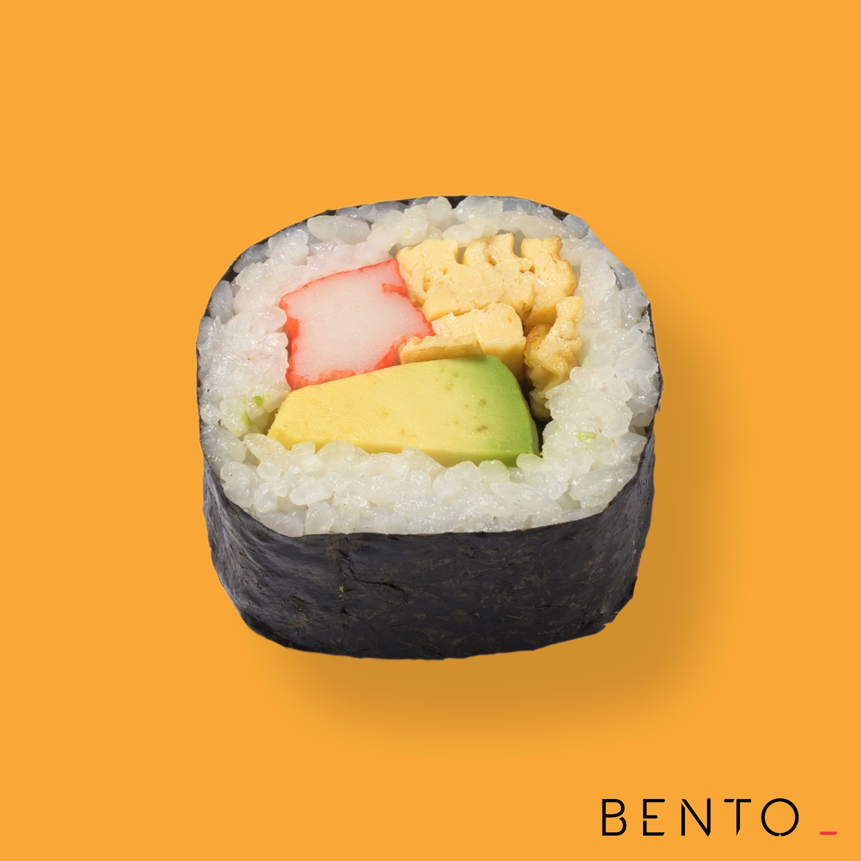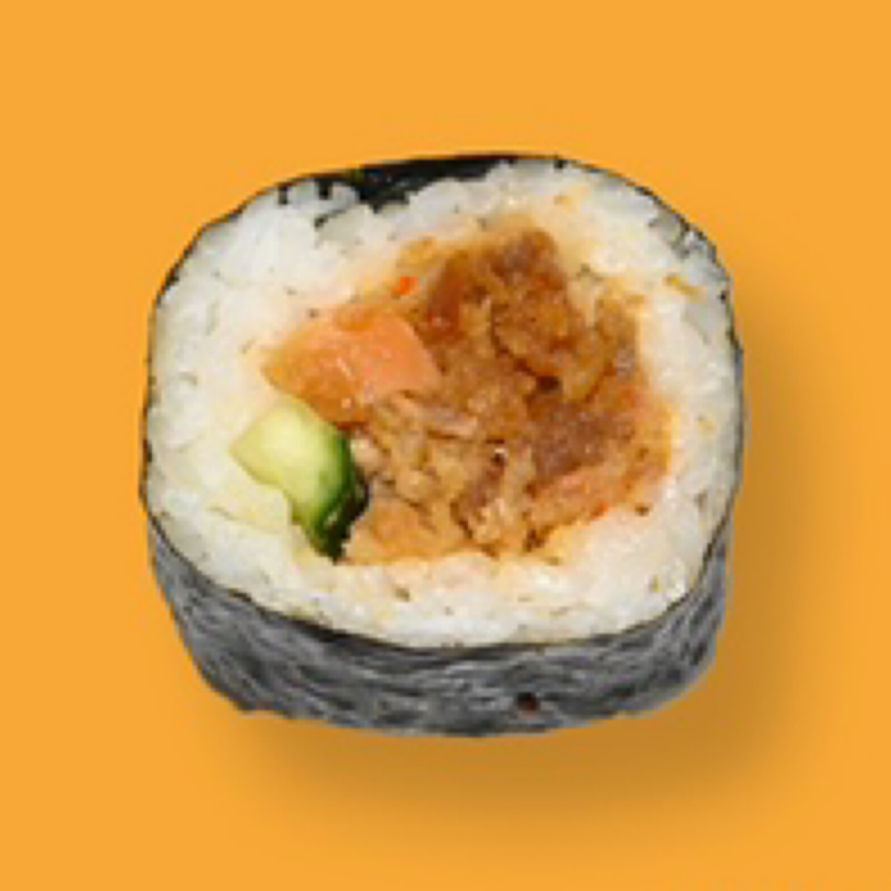 Salmon roll, cooked tuna roll and fried prawn roll topped with Bento aurora sauce.