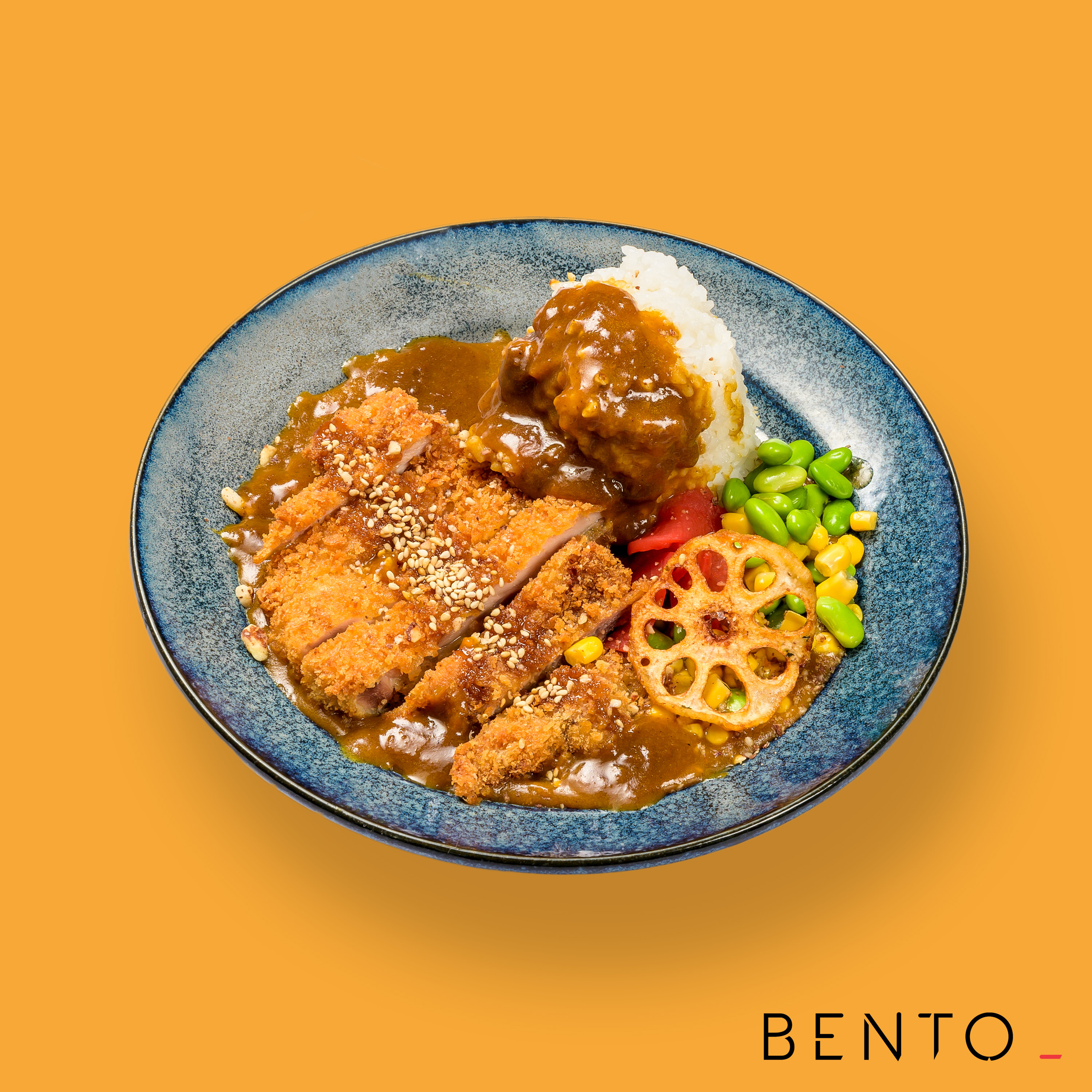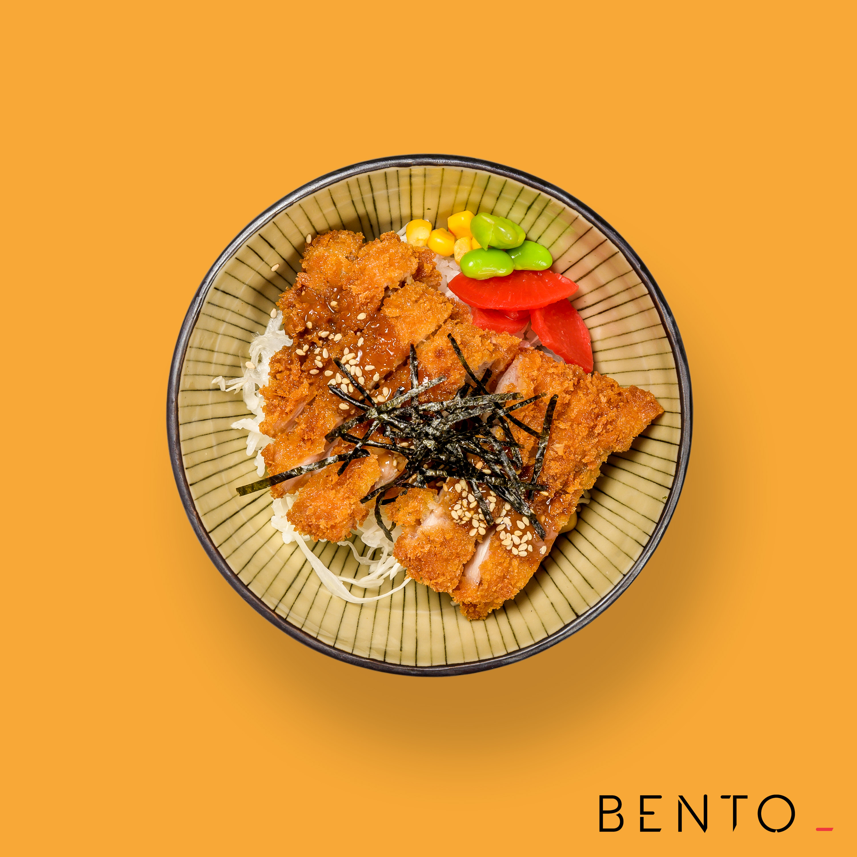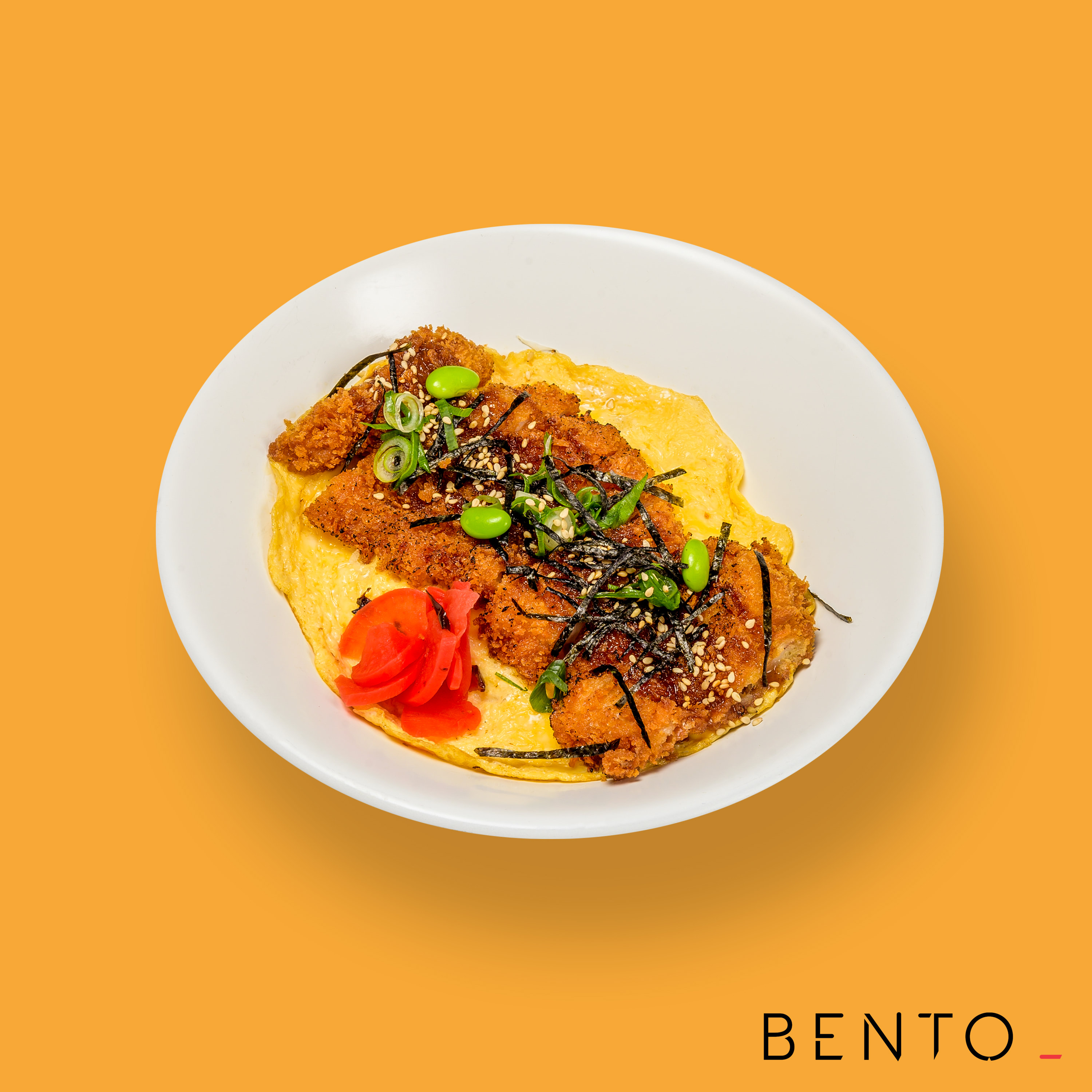 Fried bread crumbed chicken served with omelette on the rice and topped with Bento katsu sauce