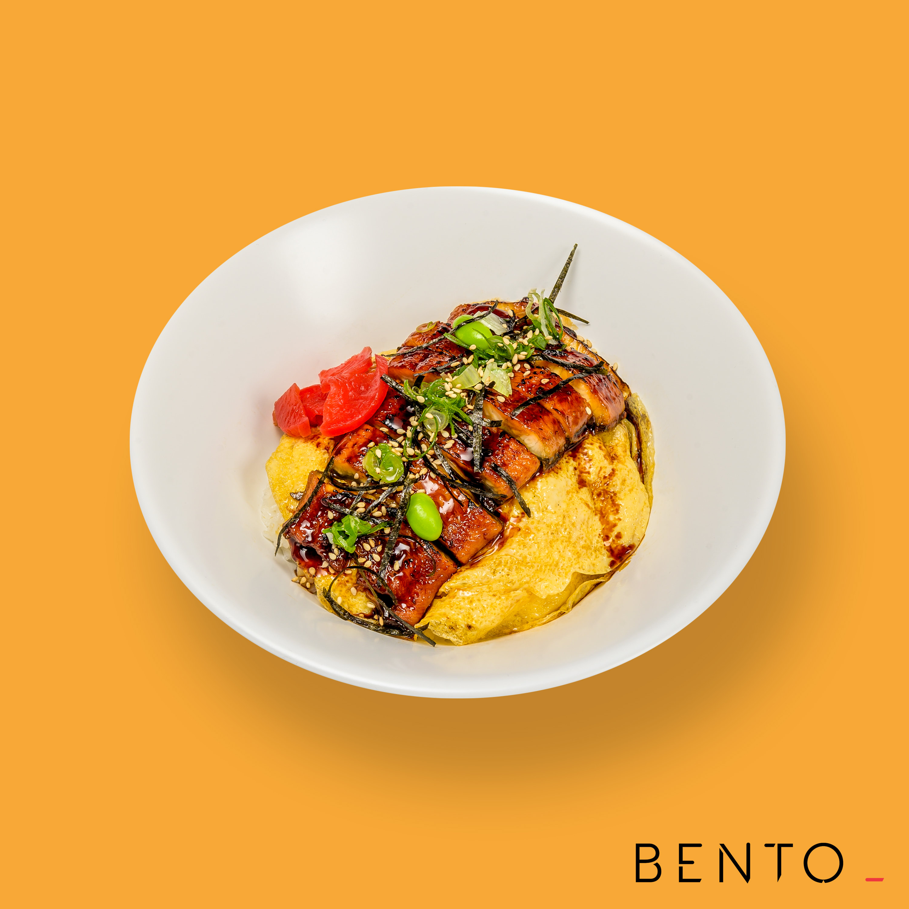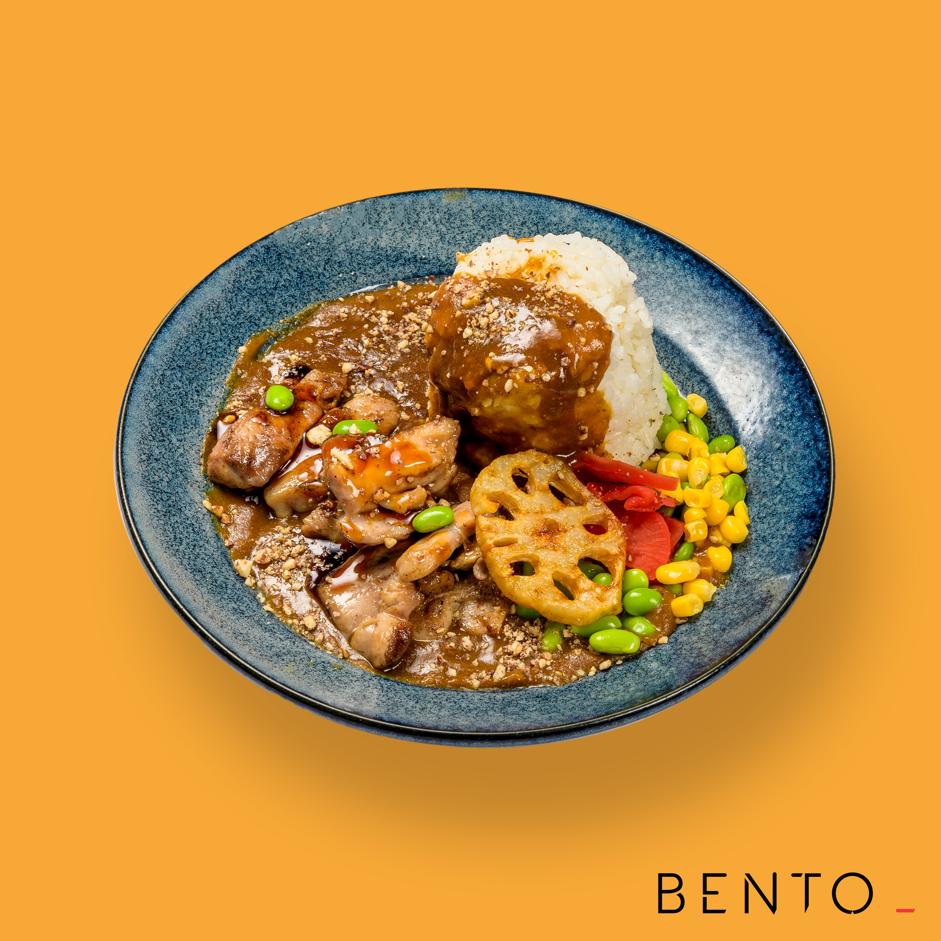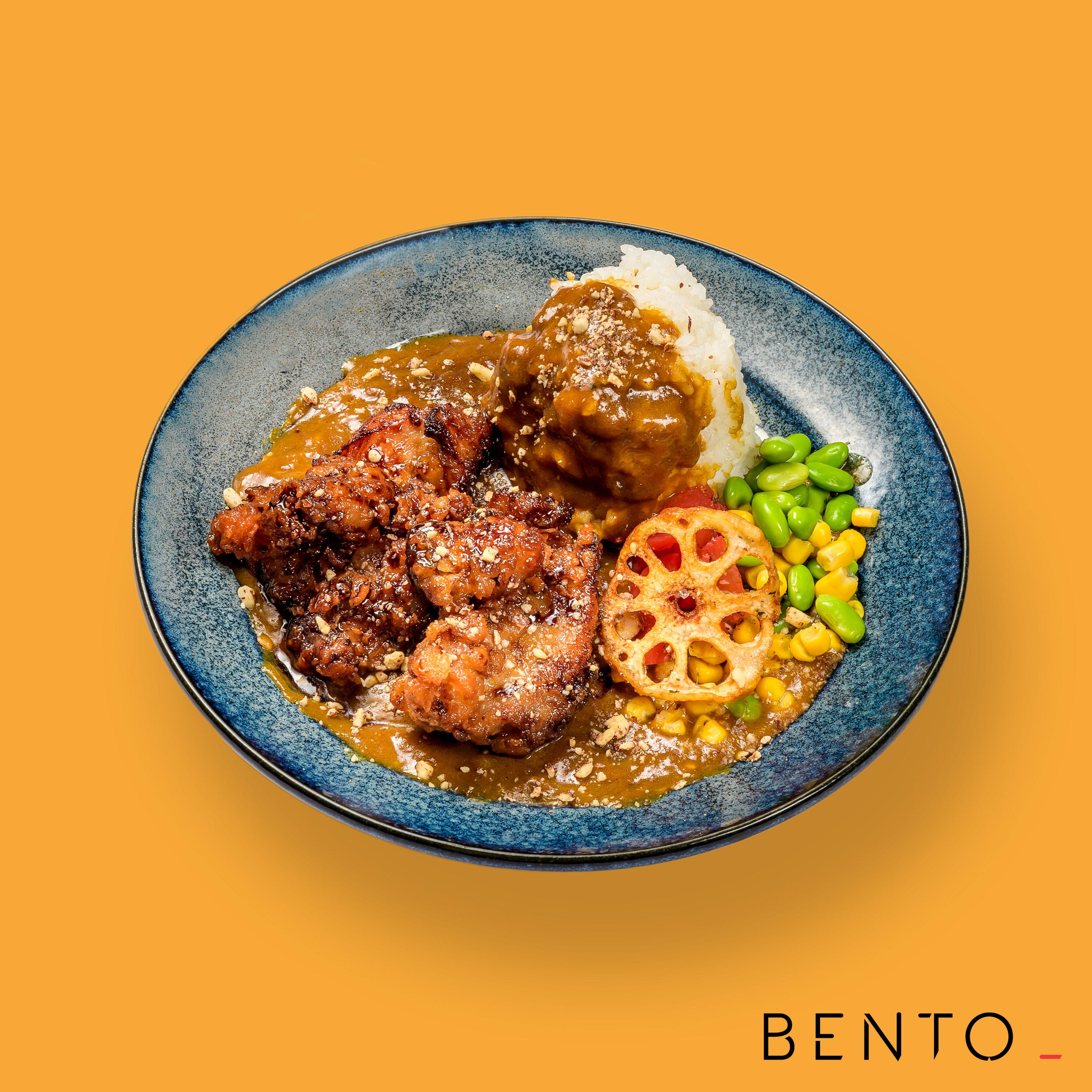 Fried bread crumbed chicken served with omelette on the rice and topped with Bento katsu sauce