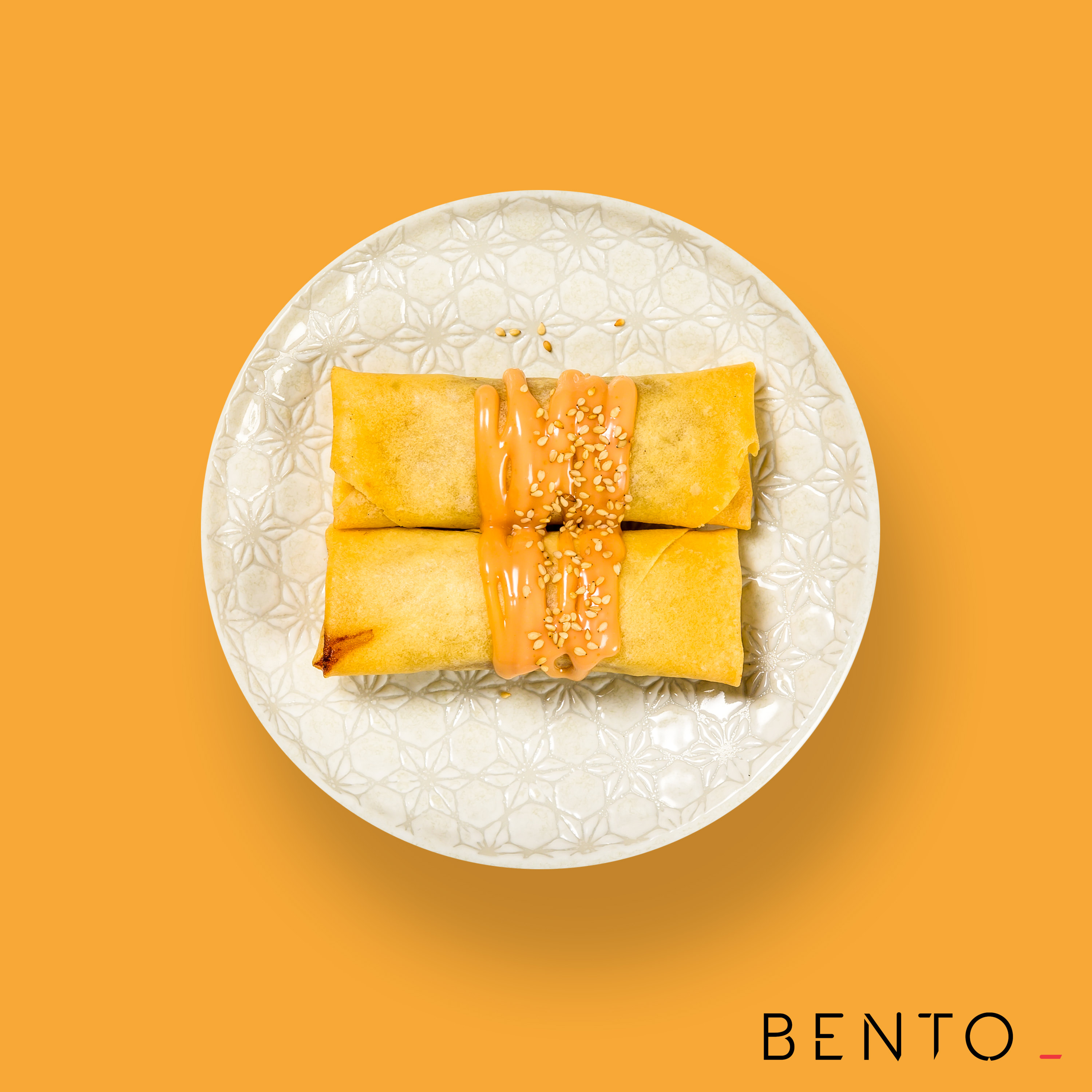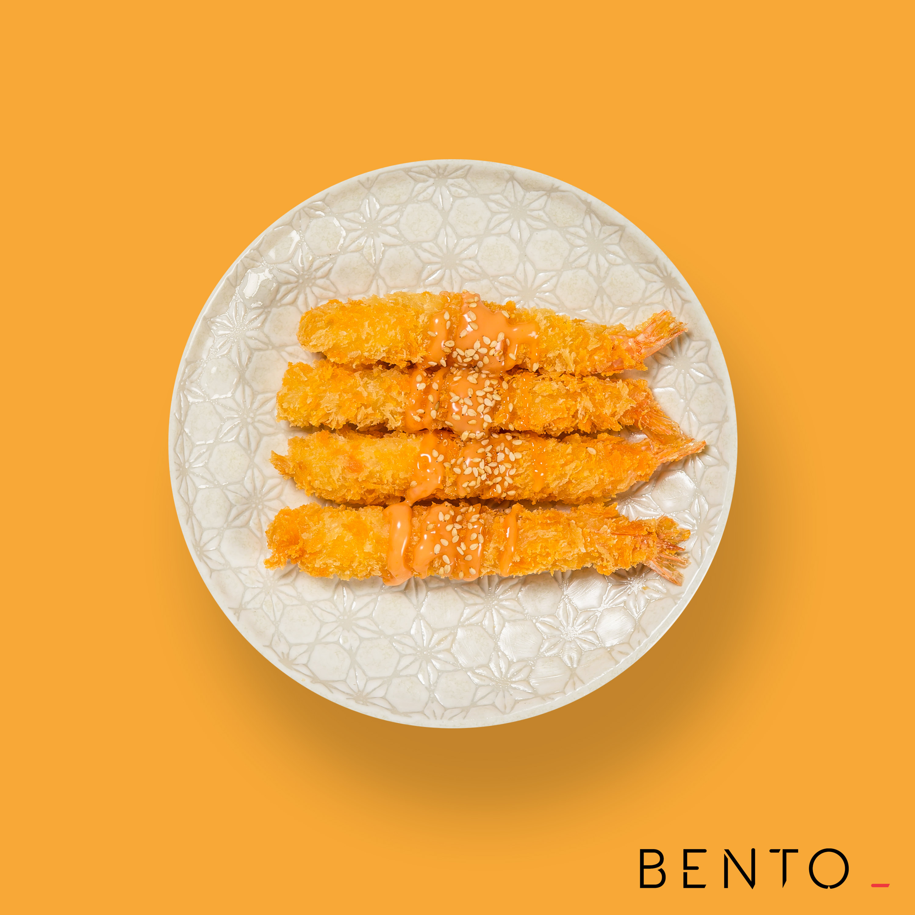 Fried prawn rolled with lettuces with Bento aurora sauce on top