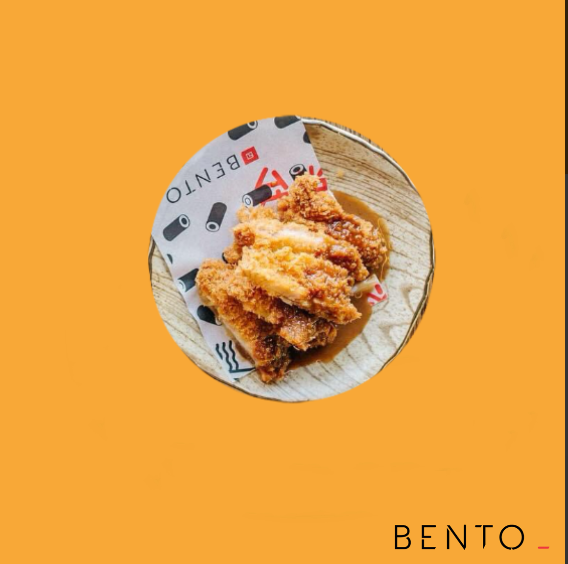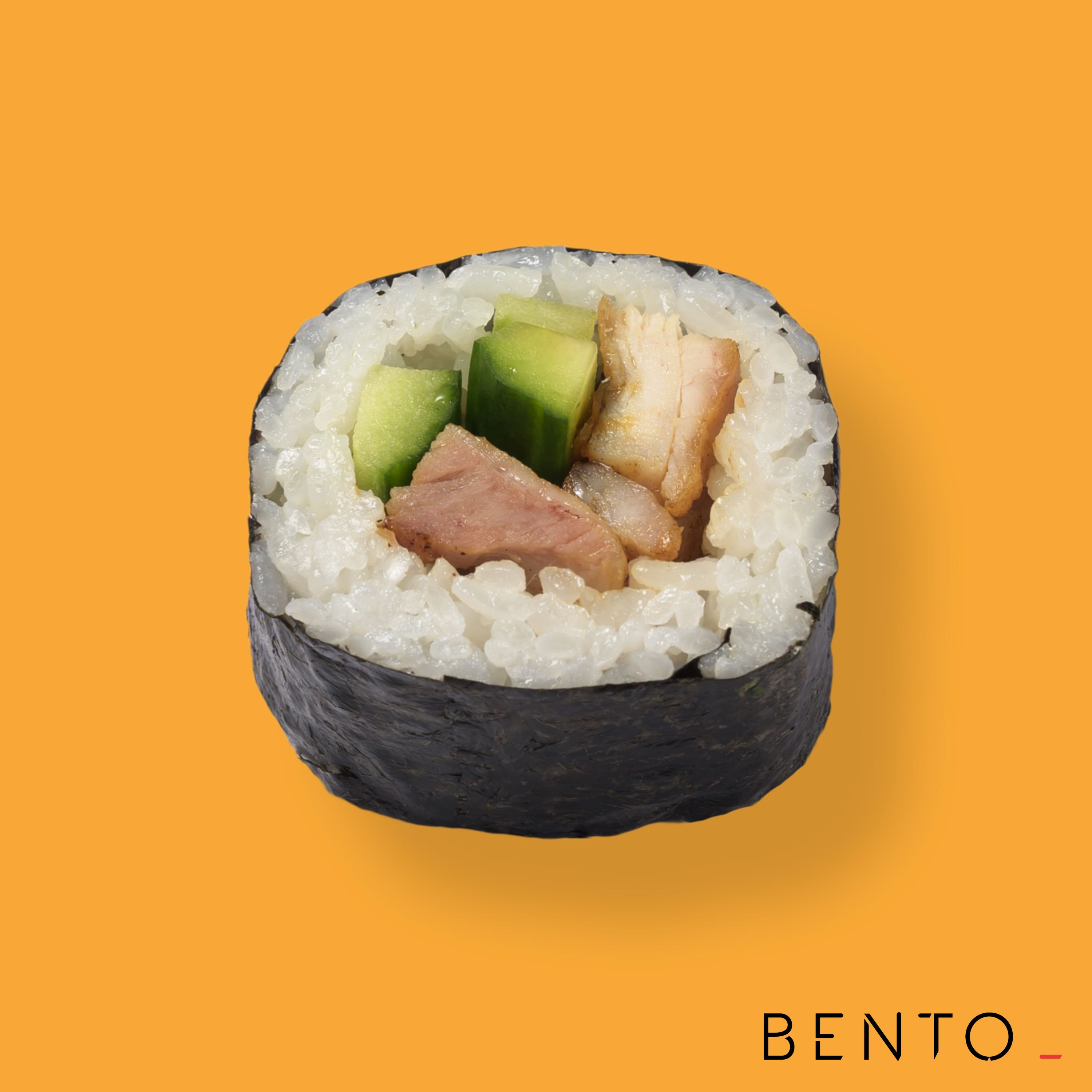 Chicken katsu rolled with Bento katsu sauce and cucumbers